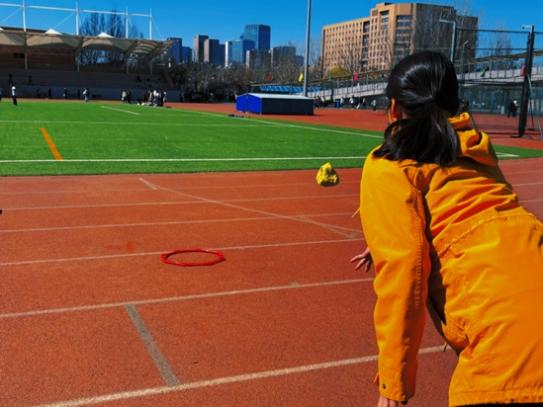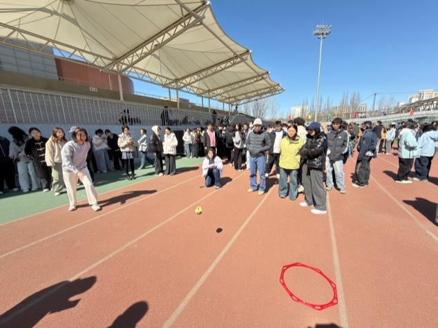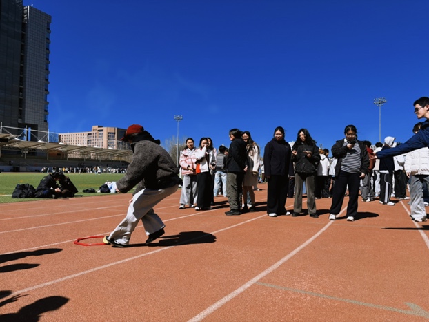 比赛现场,欢声笑语与加油呐喊声交织成一片。“旋风投手”项目要求每队10名队员依次完成特定距离的投掷与接力,既考验个人的爆发力与精准度,更考验团队的策略与默契。赛场上,选手们凝神聚力,奋力一掷,每一次精准的落点都赢得场边阵阵欢呼;即便偶有失误,队友们也毫不气馁,立刻以击掌或鼓励的话语送上支持。场边观众热情高涨,不少已完赛的队伍更是化身“最强后援团”,为后续登场的班级摇旗助威,充分展现了首医学子团结拼搏、阳光向上的精神风貌。